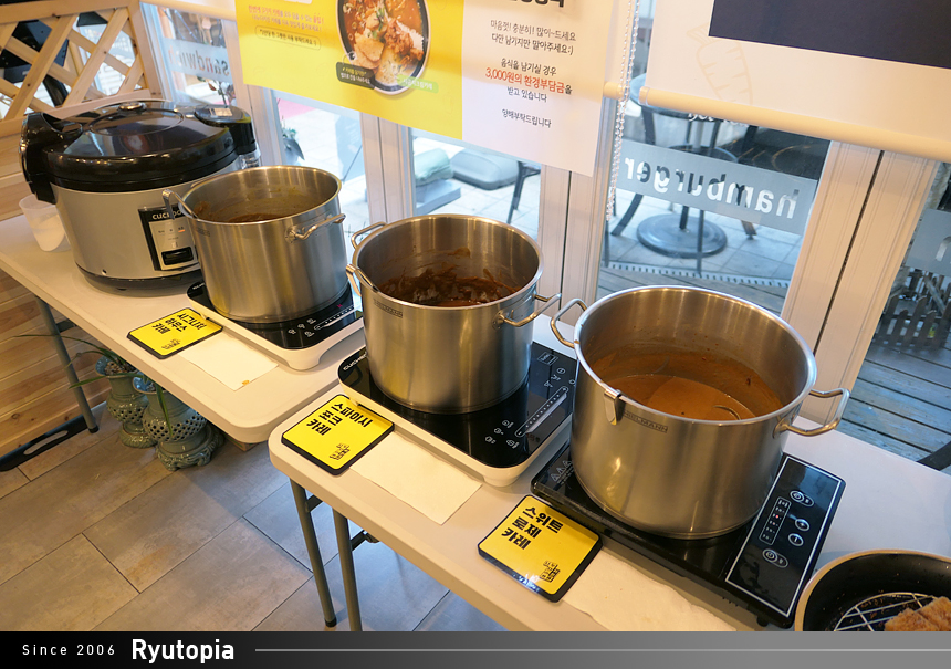 딱 하나 단점이 있다면 별도의 반찬을 담을 그릇이 따로 마련되지 않아 카레 위에 얹어먹어야 하는 불편이 있다는 점.