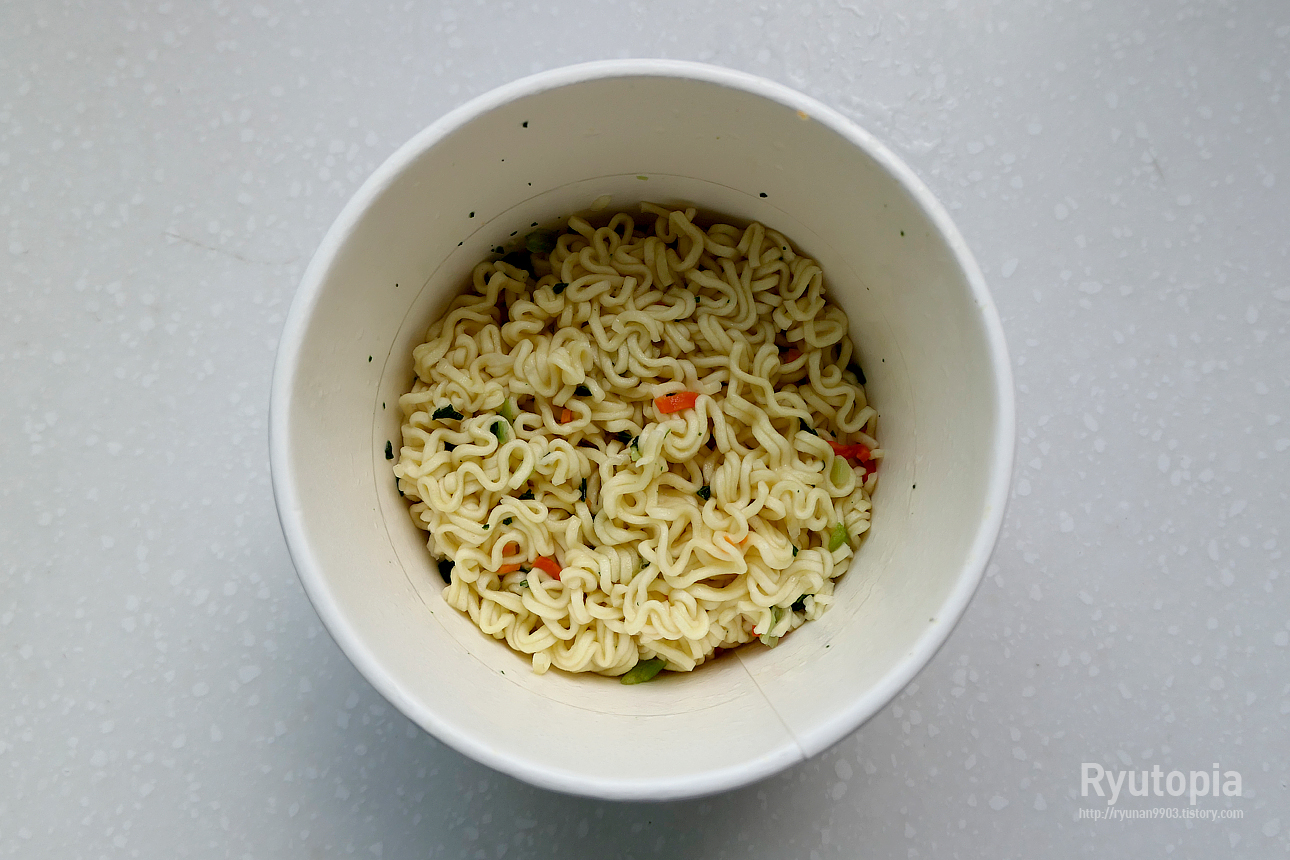용기 안에는 면과 함께 이미 뜯어진 상태로 건더기 후레이크가 들어있습니다.