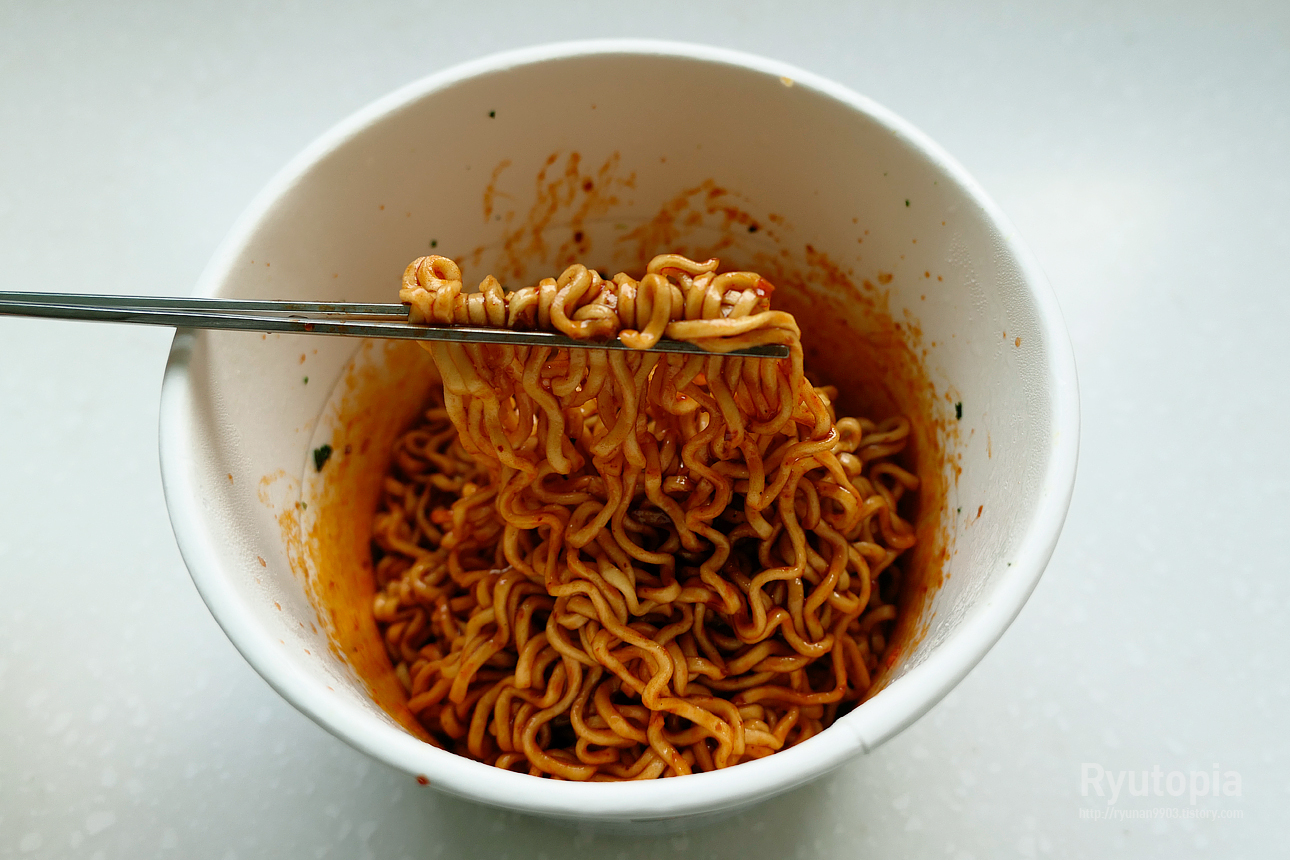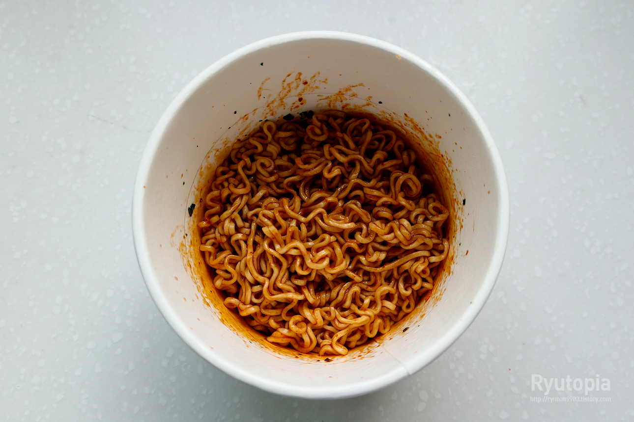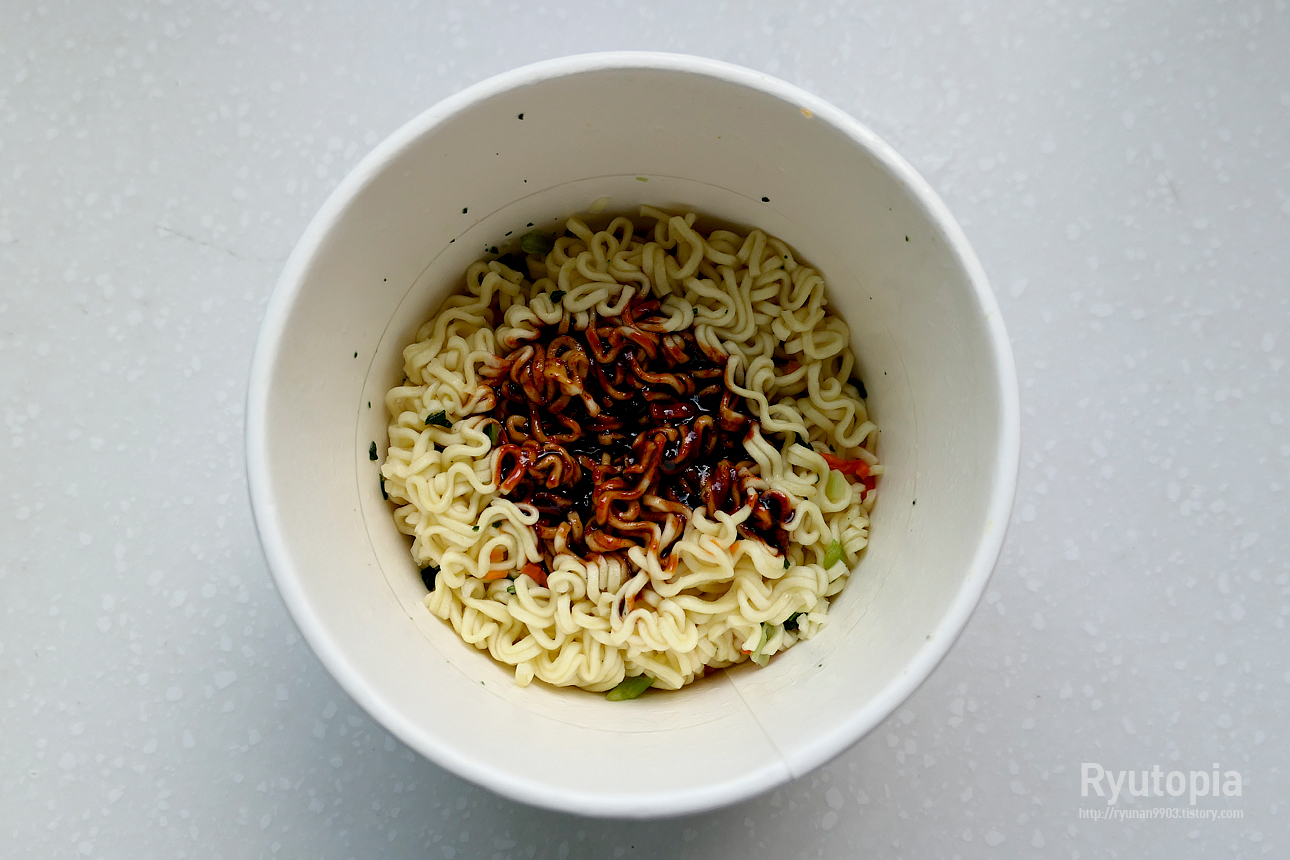 제품 자체는 꽤 괜찮긴 했습니다만, 뭔가 컨셉이 오묘했던 컵라면. 매운 볶음라면류를 좋아한다면 도전해보셔도 될 듯.