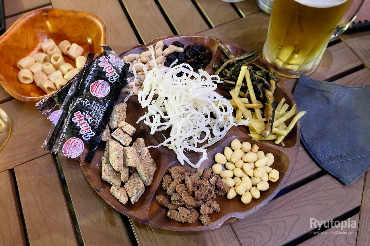 딱 맥주 마시기 좋은 분위기였습니다. 간만에 야외에서 이런 생맥주, 거기에 옛 감성의 모듬 마른안주 같이하니 좋군요.