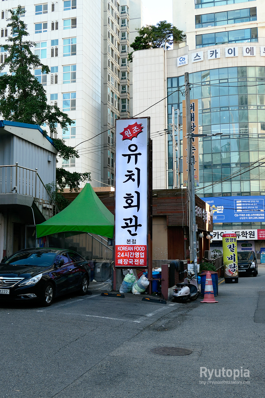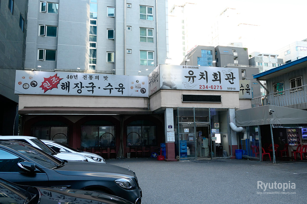 수원 인계동에 위치한 '유치회관' 이라는 궁서체의 진지한(...!) 해장국 전문점.