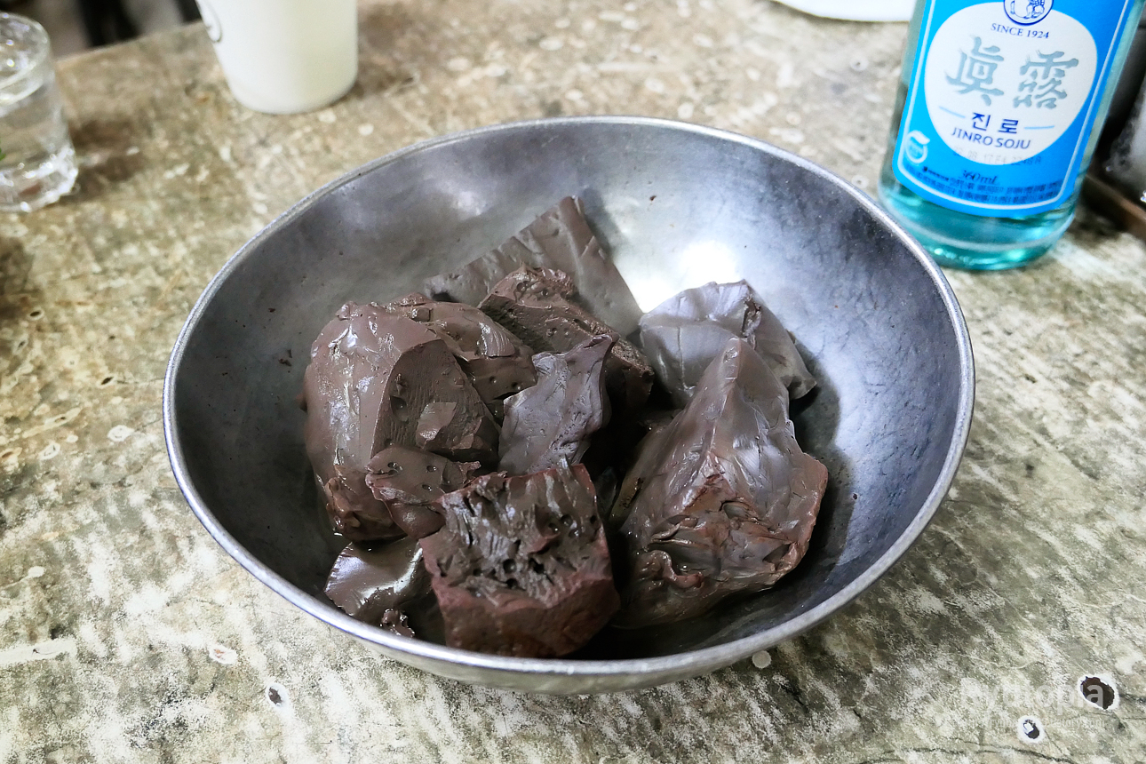 해장국 안에 선지가 따로 들어가지 않고 이렇게 스테인레스 대접에 삶은 선지가 듬뿍 담겨나오는데