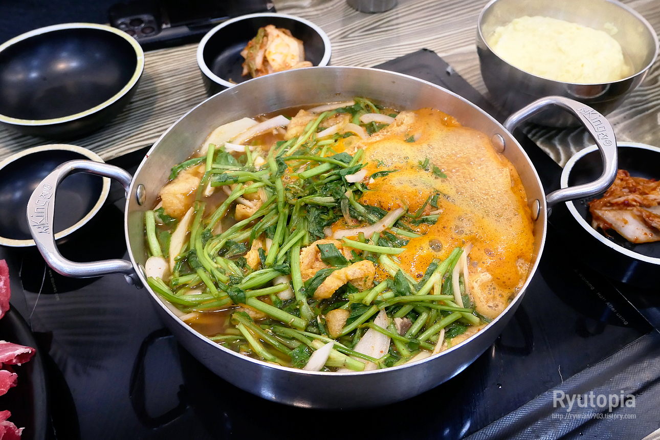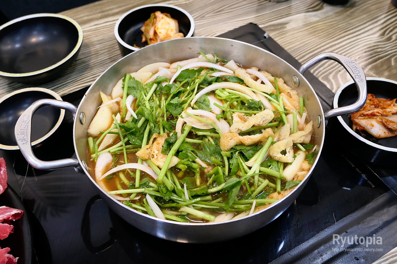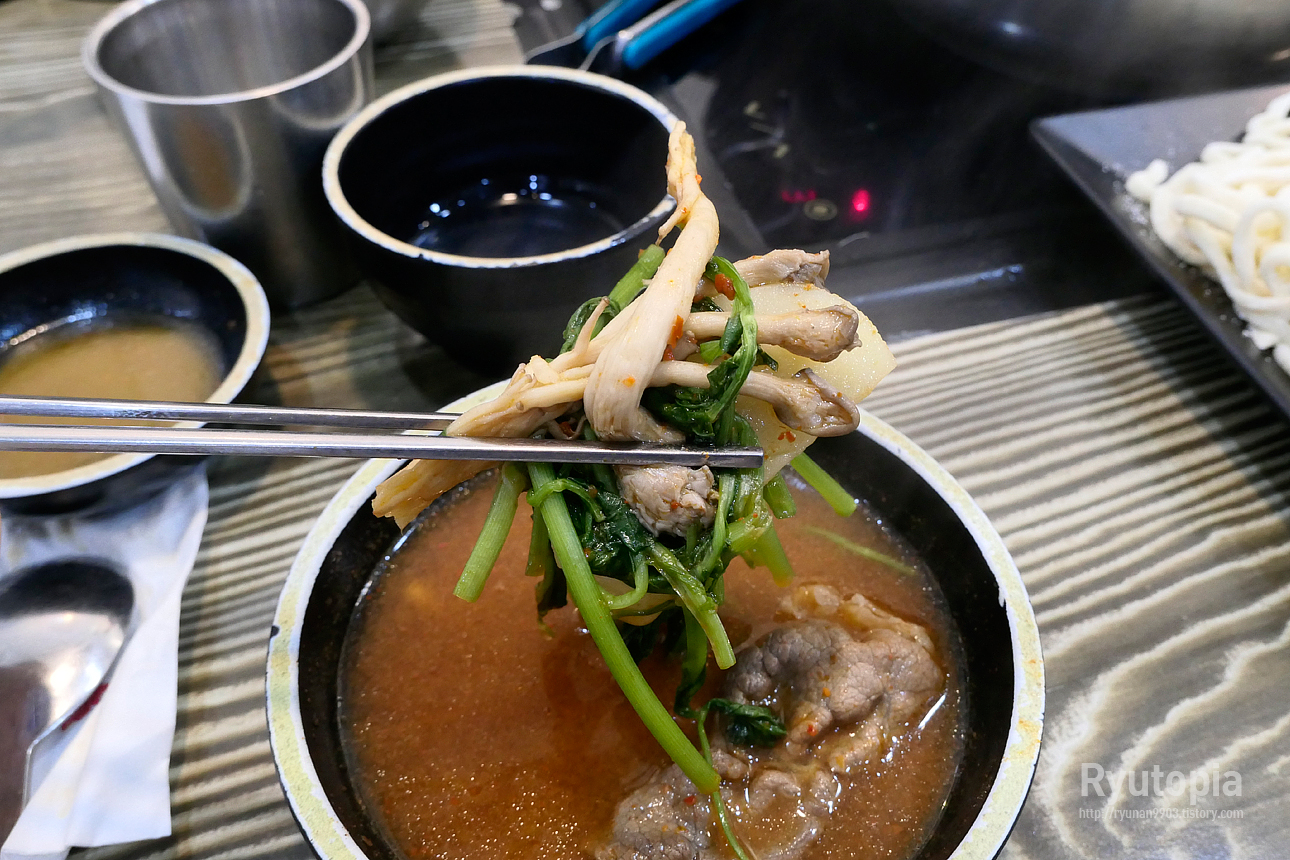 미나리, 그리고 느타리버섯과의 조합도 좋습니다. 무엇보다 여기 국물이 정말 맛있는데요,