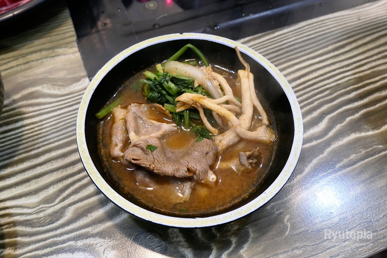 처음에 고기를 넣기 전 그냥 순수한 국물만 따로 맛을 보았는데 살짝 얼큰하면서 계속 당기게 만드는 감칠맛이 있어요.