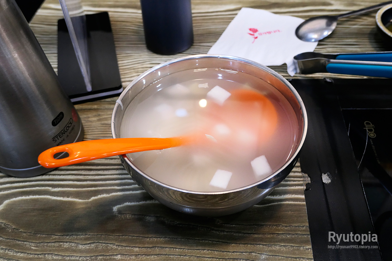 국자로 각자 적당히 먹을 만큼 떠다 먹으면 되겠습니다.