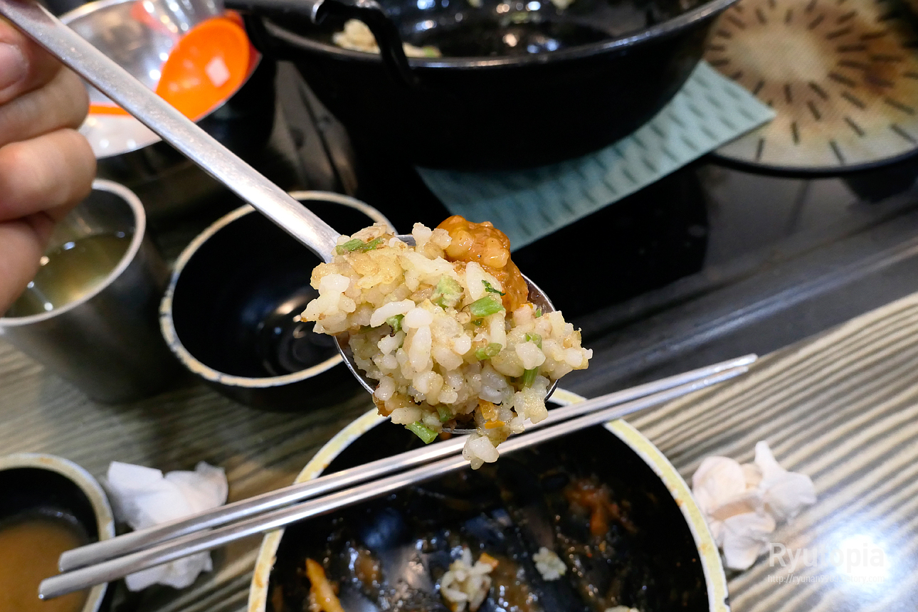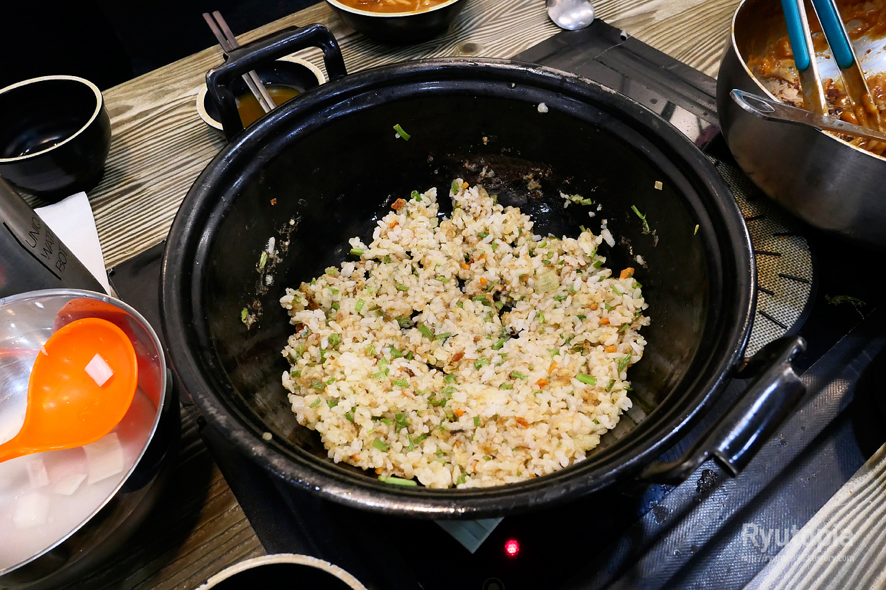 샤브샤브 냄비에 그대로 밥과 재료를 넣고 볶는 게 아닌 주방에서 별도의 냄비에 따로 볶아 낸 밥을 내어주었습니다.
