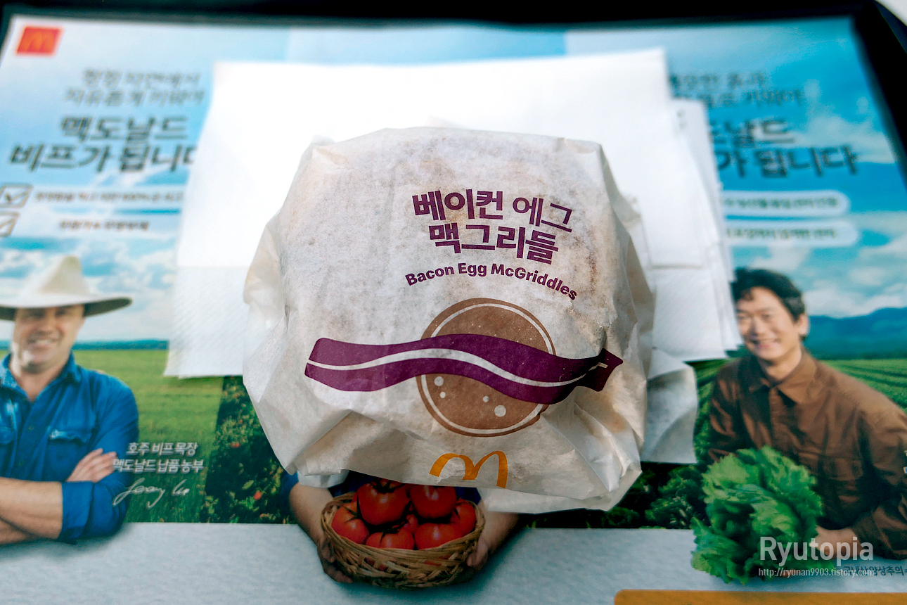 이제 한국에서도 해외와 동일하게 핫케이크 번을 사용한 '맥그리들' 을 먹어볼 수 있게 되었습니다.