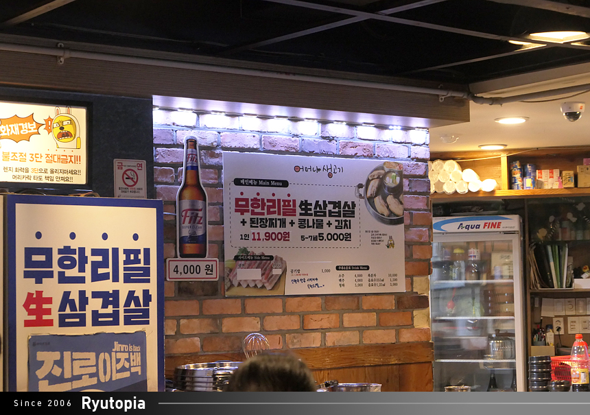 1만원대 무제한 삼겹살집이 한창 유행을 탈 때, 노량진 근처에도 비슷한 컨셉의 고깃집이 우후죽순으로 생겼지만