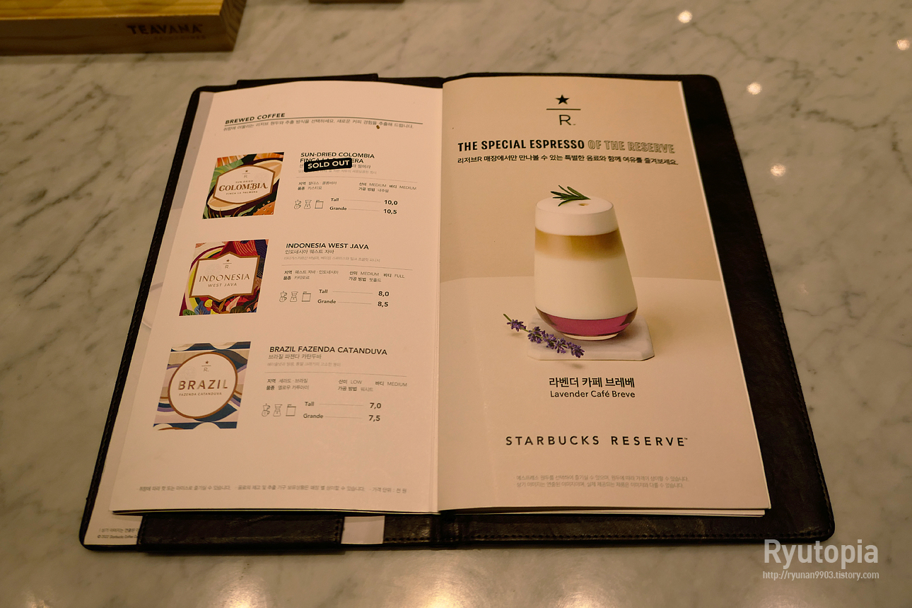 리저브 & 티바나 매장에서는 일반 스타벅스에서 마실 수 없는 한정 음료들이 있어 그걸 선택하는 묘미가 있습니다.