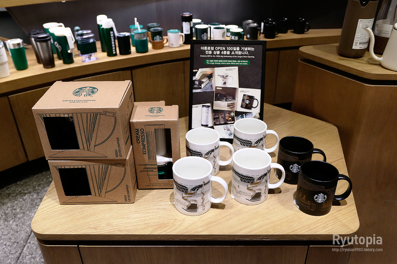 더 종로R점에서만 구매 가능한 한정 머그잔과 드리퍼 등의 상품.