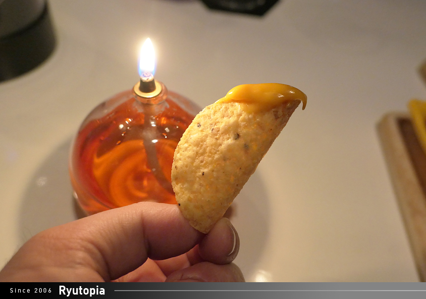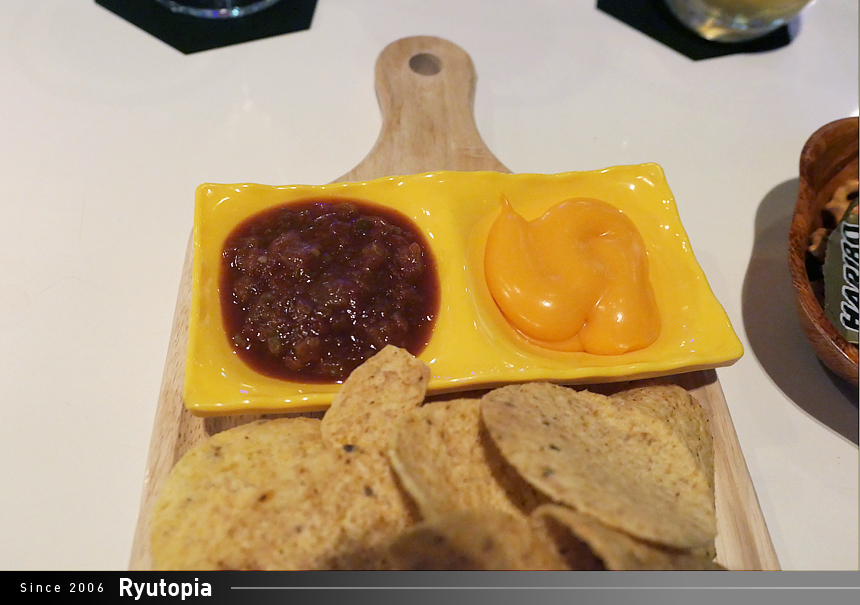 나쵸에는 살사 소스와 치즈 소스, 두 가지가 제공되는군요.