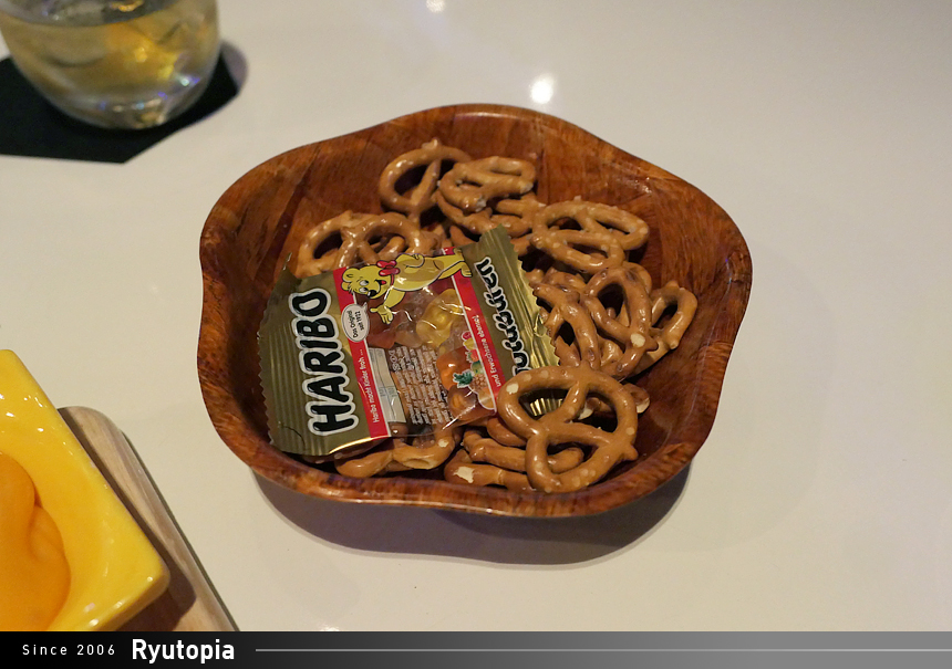 기본으로 하리보 젤리와 함께 프레첼 과자가 나옵니다.
