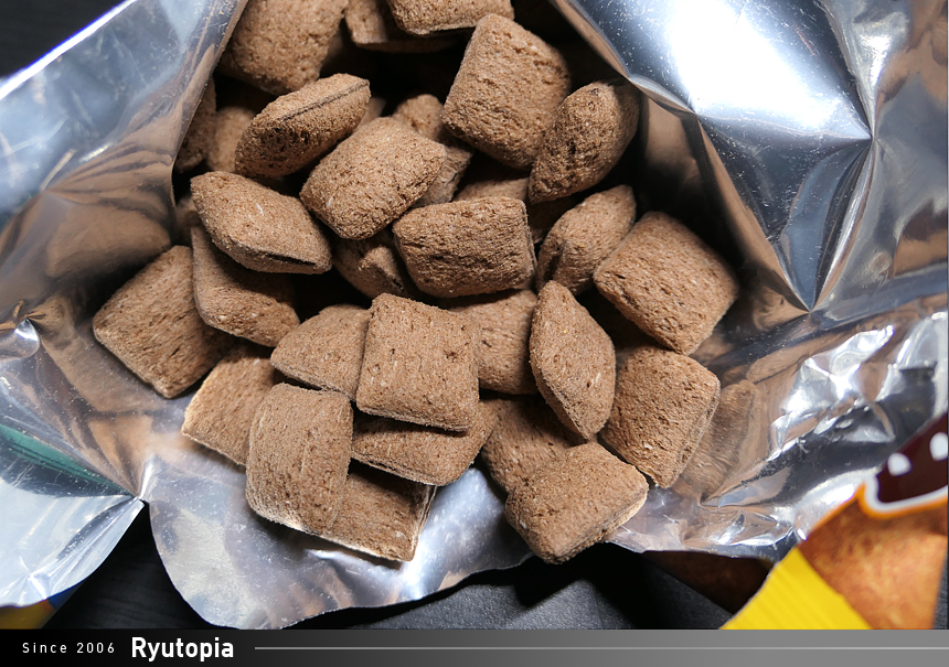 그냥 스낵처럼 집어먹는 것보다는 찬 우유에 말아 간식 또는 식사대용의 씨리얼 개념으로 먹어야 좋은 제품입니다.