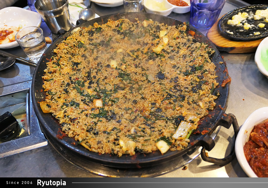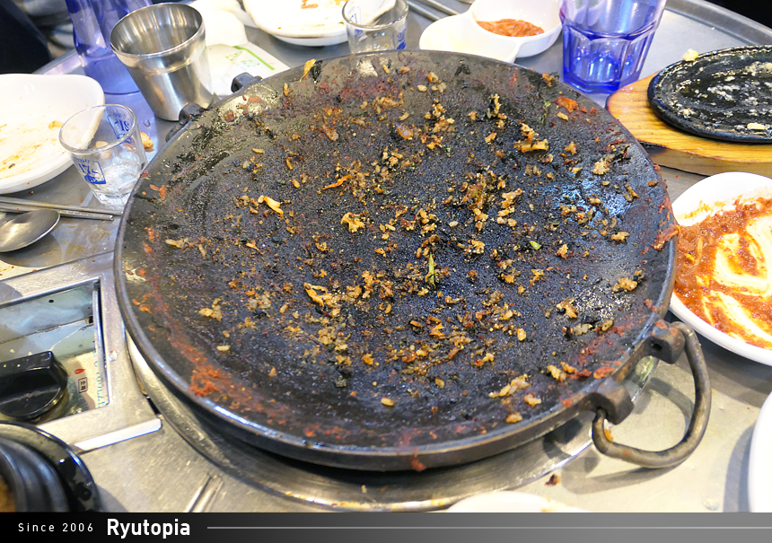 철판에 살짝 눌어붙을 정도로 맛있게 볶은 뒤 먹으면 됩니다.