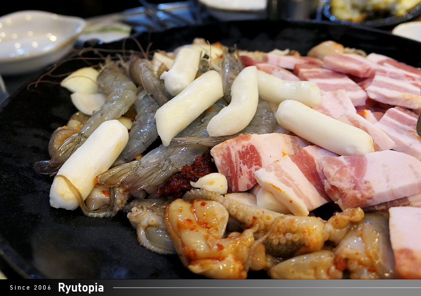 혹은 삼겹살+새우가 함께 나오는 독도모듬입니다. 가격은 둘 다 1인분 13,000원으로 동일합니다.