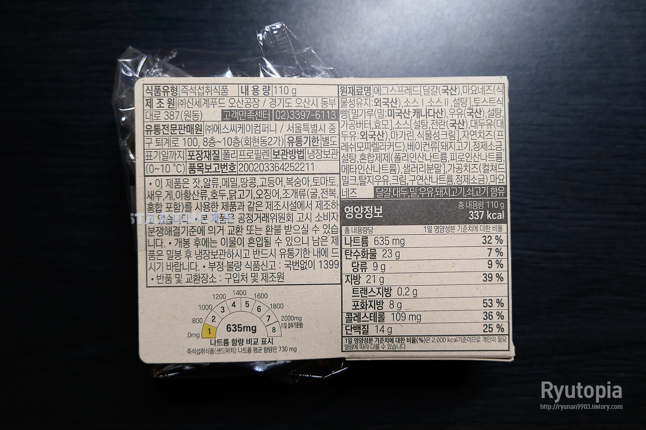 다른 샌드위치류에 비해 염도가 꽤 높은 편입니다. 아마 베이컨에서 나는 게 아닐까 싶은데 싱겁게 드시는 분들은