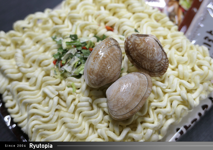 이 제품도 그와 동일하게 생물 바지락이 통째로 들어간 제품입니다. 여튼 인스턴트 라면으로선 꽤 파격적인 시도.