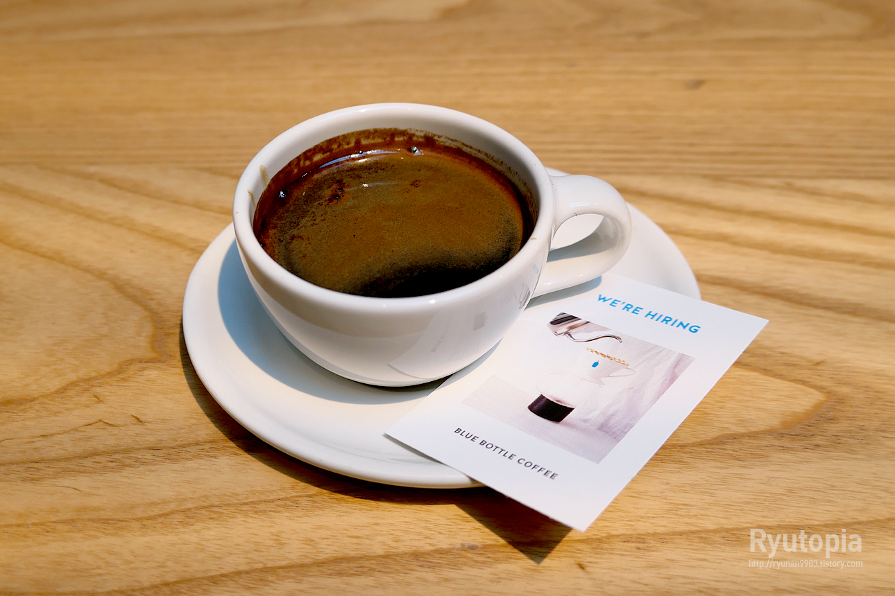 블루보틀의 아메리카노는 타 카페의 양 많은(?!) 아메리카노가 아닌 롱블랙 느낌의 커피라는 직원 소개가 있었습니다.