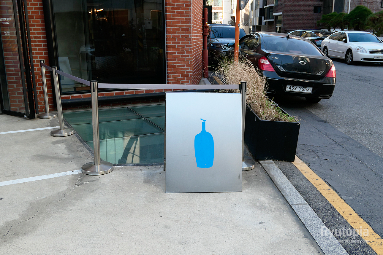 어떠한 간판 문구 없이 이 로고 하나만 작게 붙어있는 것 만으로 여기가 블루보틀이라는 것을 알 수 있게 해 줍니다.