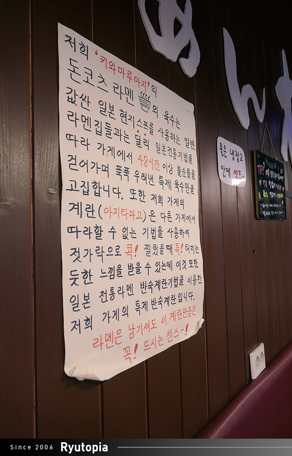 수원 근방으로 몇 군데 체인을 두고 있는 일본라멘 전문점으로 평이 꽤 좋은 곳이고 예전 방문도 좋게 기억하는 곳.