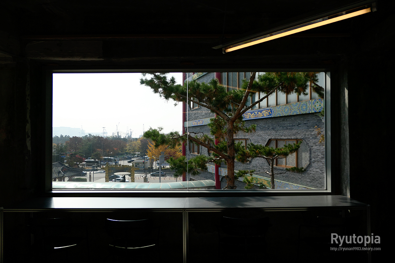 창가 쪽에서 바라본 바깥 풍경. 인천 선린동 일대가 바다 옆에 붙어있는 지역이라 멀리 인천항을 볼 수 있습니다.