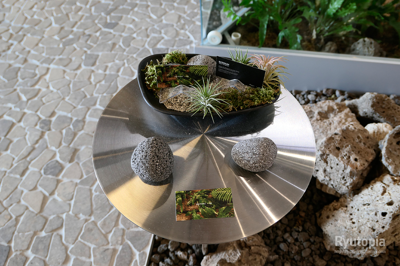 1층 홀 중앙에 작게 정원이 조성되어 있습니다. 정원 옆에 이렇게 작은 화분도 있는데 명함꽂이로도 활용 중.
