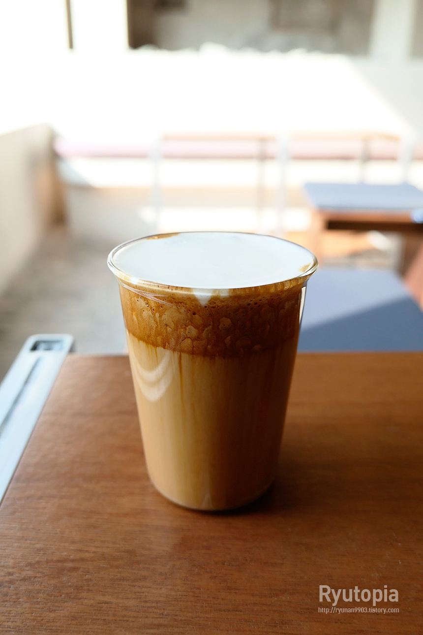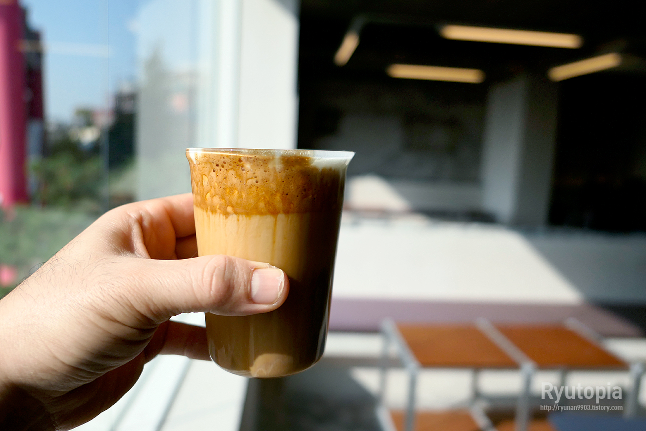 음료의 양 자체는 그리 많은 편이 아니긴 합니다만, 플랫 화이트 계열보다는 좀 더 넉넉한 편.