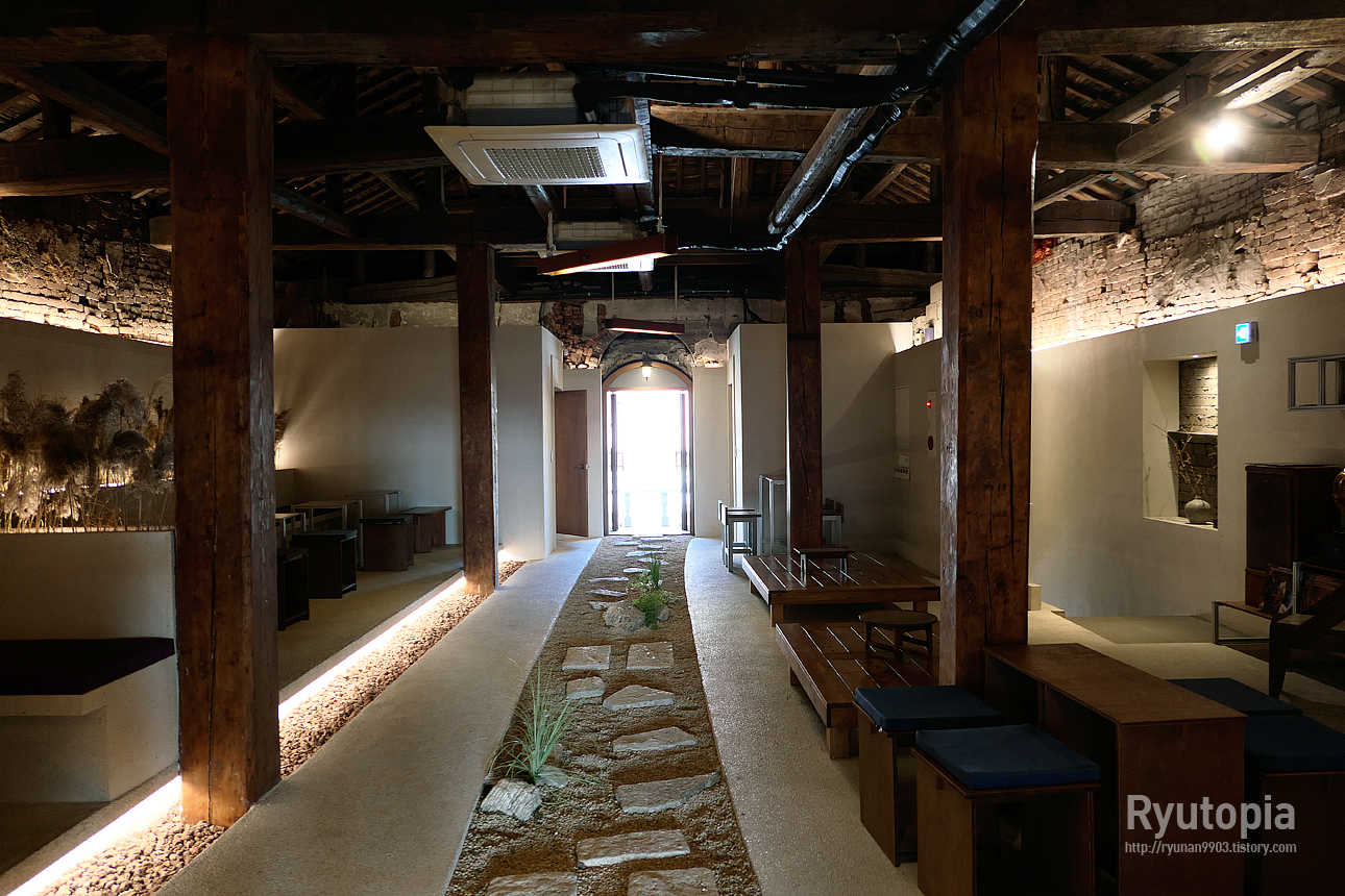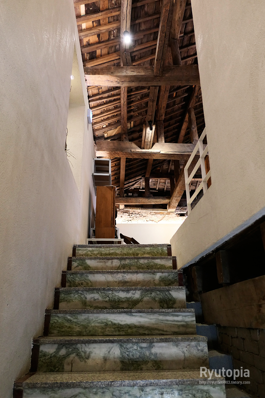 천장 부분은 옛날 사용되었던 벽돌 일부가 이렇게 그대로 모습을 드러내며 세월의 흔적을 나타내고 있습니다.