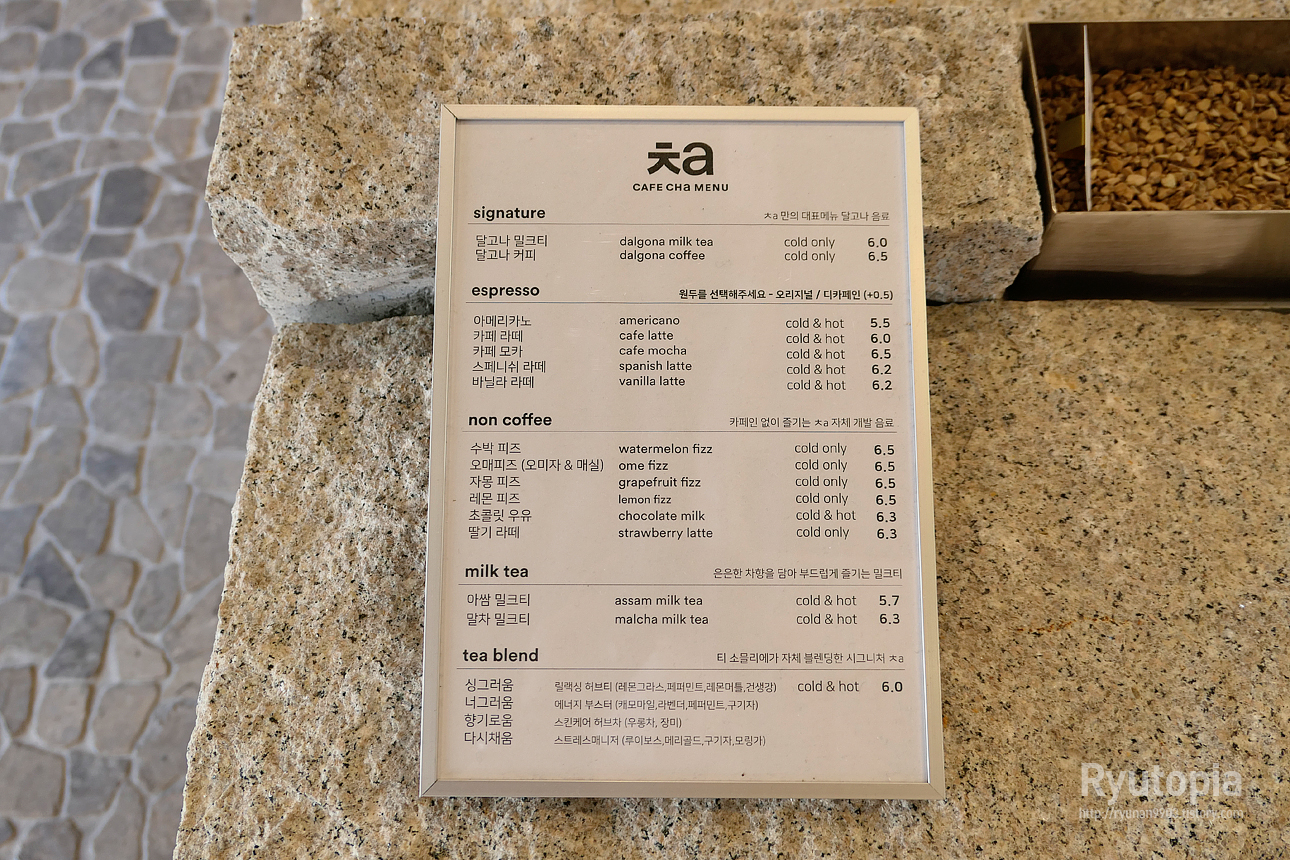 음료 메뉴판을 한 컷. 앞서 이야기했듯 이 곳의 대표 음료는 달고나 밀크티, 그리고 달고나 커피.