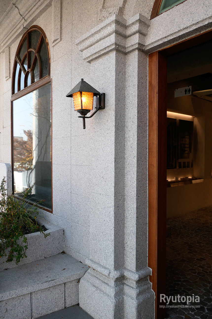 2층 규모의 바깥에서 본 건물 전경. 구한말 서양 문물이 유입되던 시절의 석조 건물을 연상케 하는 외관.