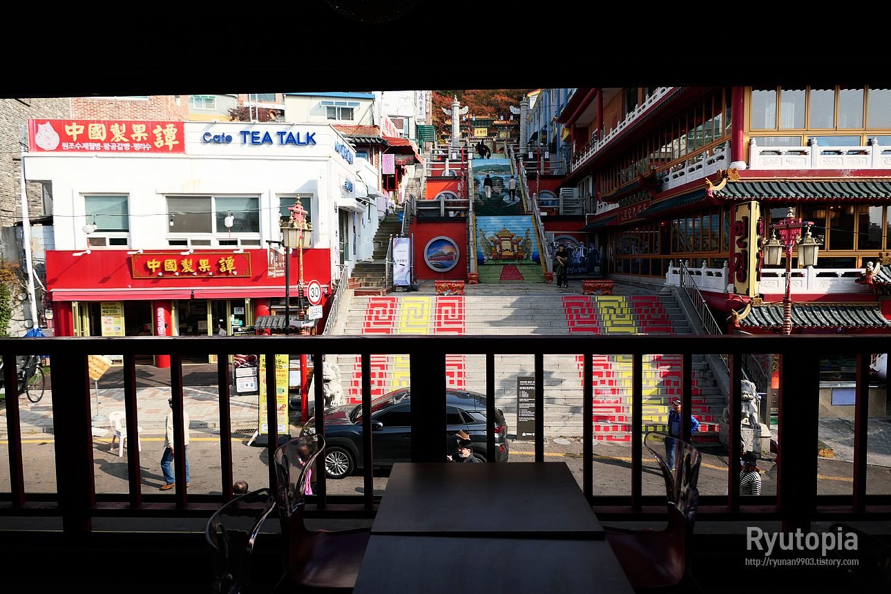 이 카페 발코니에선 자유공원으로 올라가는 인천 차이나타운 최대 사진 명소인 '황제의 계단' 을 정면으로 볼 수 있습니다.