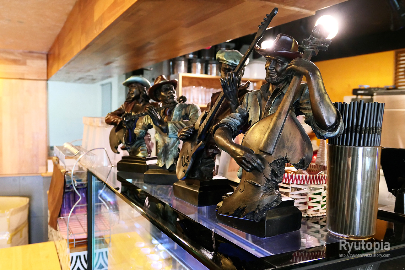 카운터 옆 냉장고 진열대 위에 전시되어 있는 조각품이 조금 인상적이라 음료 나오기 기다리면서 한 컷.