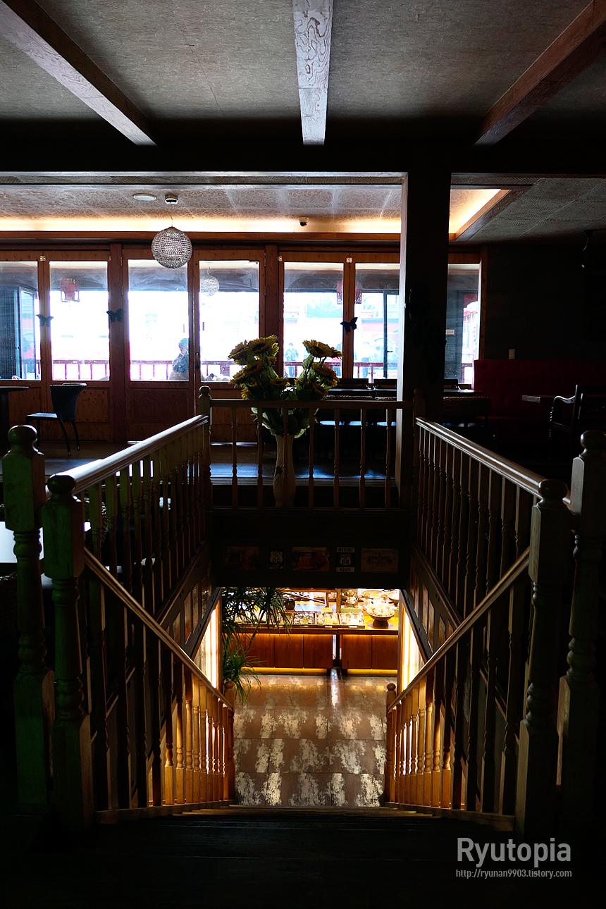 그리고 2층으로 올라가는 계단이 매장 정중앙에 있기도 하고 전체적인 인테리어가 카페보단 중화요릿집 느낌이 강합니다.