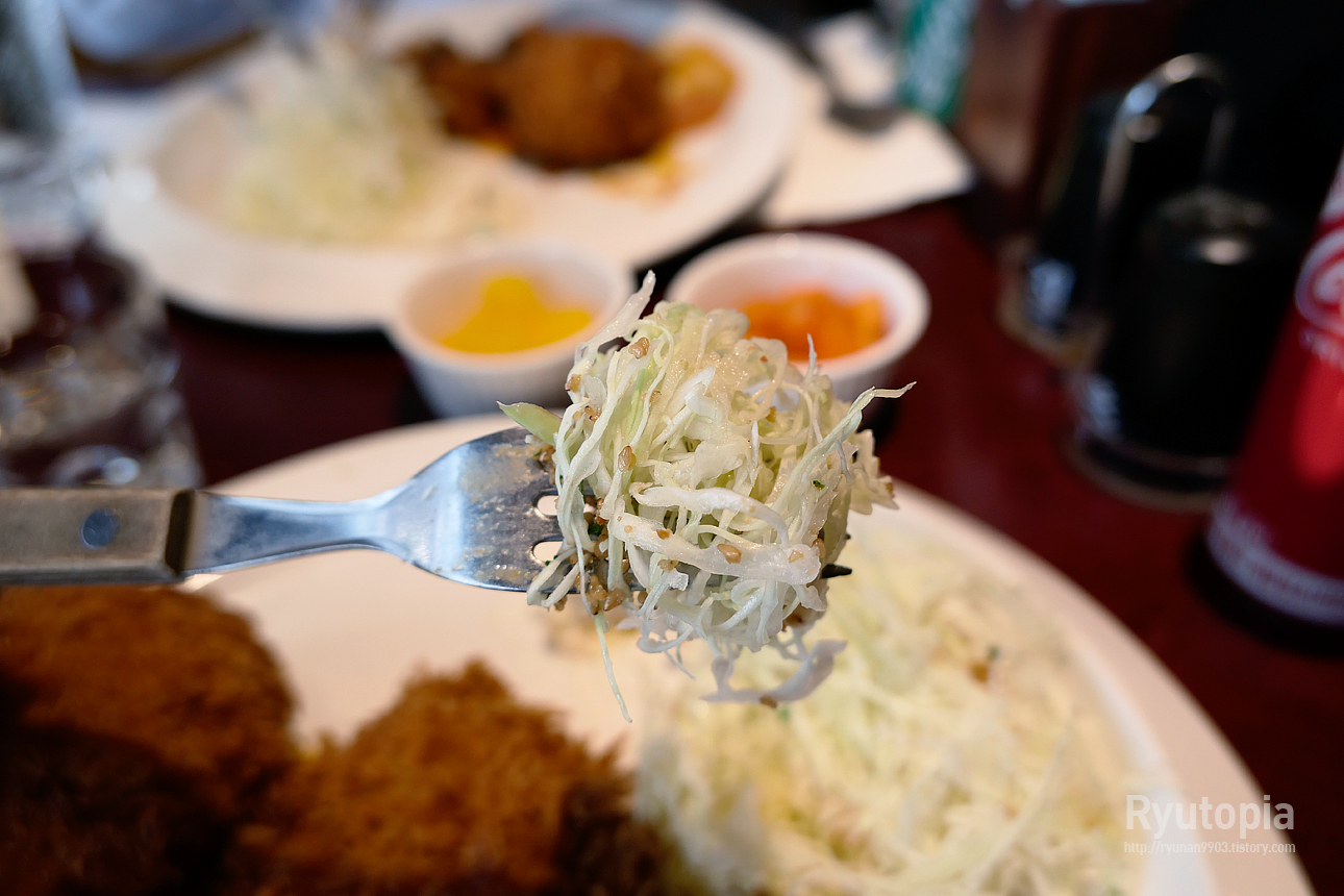 사이드로 나온 채썬 양배추 샐러드는 흡사 일식돈까스 양배추처럼 굉장히 곱게 썰어져 나온 것이 특징.
