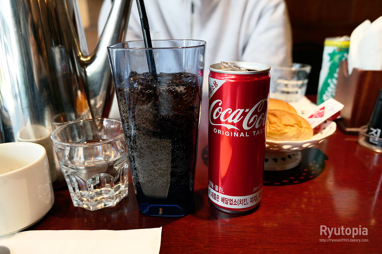 탄산음료(2,000원)는 얼음컵과 함께 제공됩니다. 아쉽게도 355ml 뚱캔이 아닌 250ml 캔으로 제공됩니다.