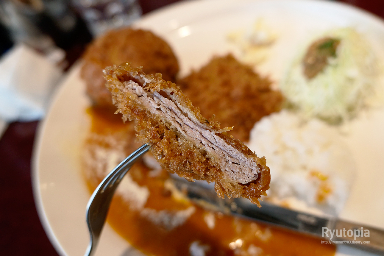 하지만 맛이 생각했던 것보다 꽤 좋네요. 일본식 돈까스처럼 엄청 두툼하진 않지만 겹겹이 돼지고기가 굉장히 촉촉합니다.