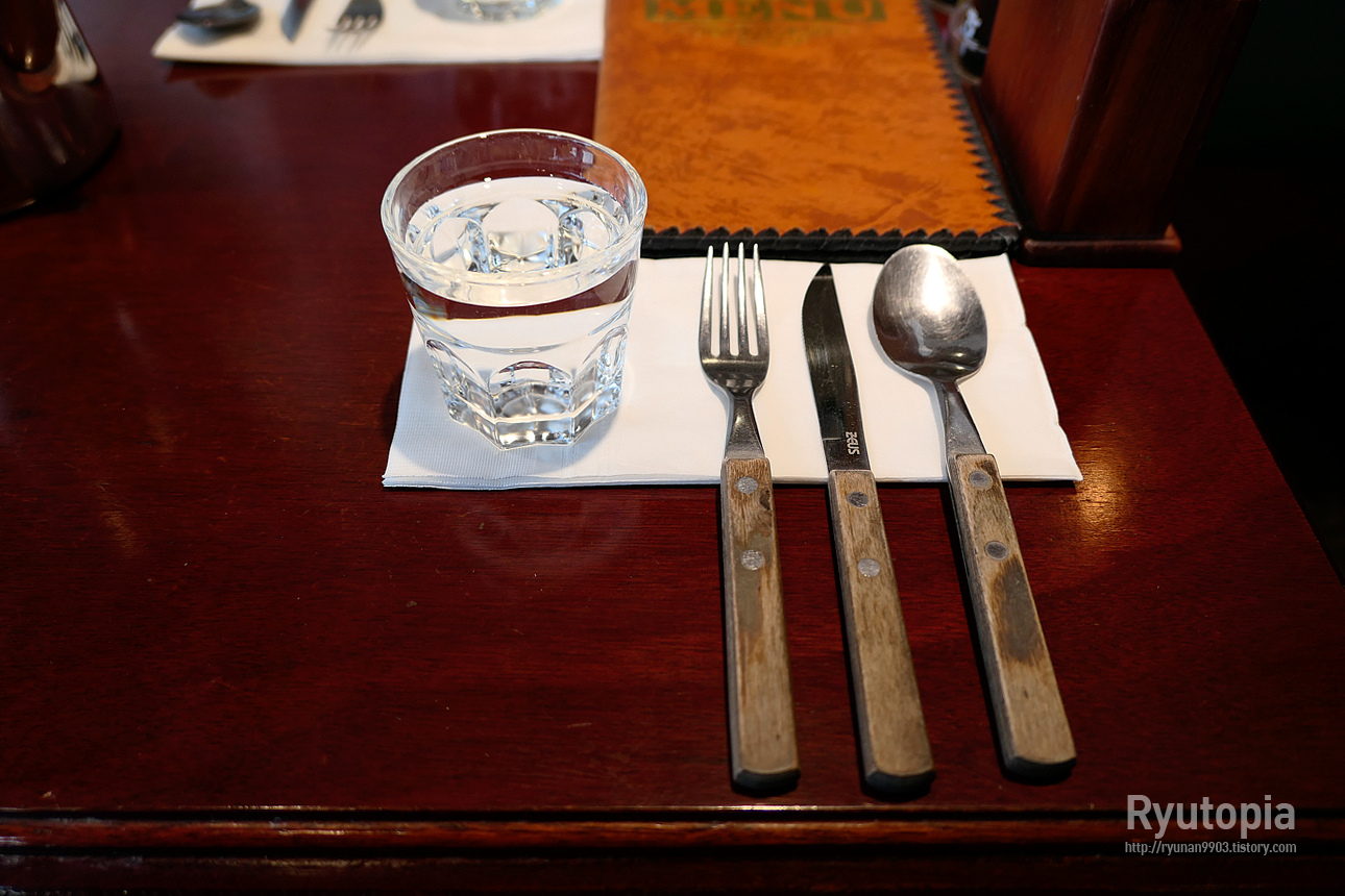 어쨌든 주전자를 가져다줘서 물 두 잔 따라놓고 메뉴 주문.