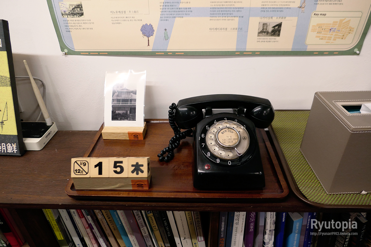 차분한 조명, 그리고 근대개항거리 시절 인천의 분위기를 느낄 수 있는 각종 도서와 포스터들.