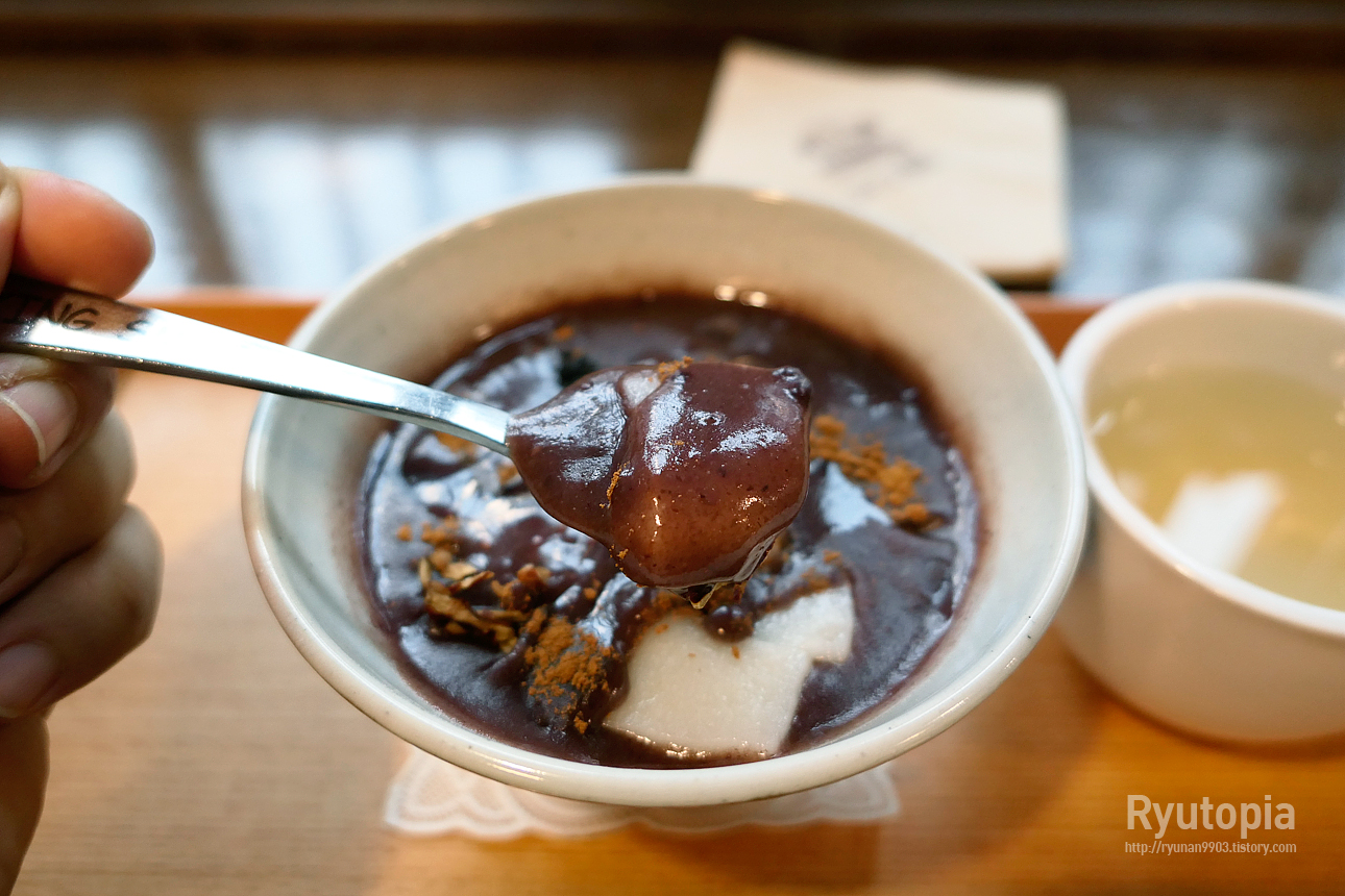 단팥죽은 기대했던 것 이상으로 맛이 괜찮았습니다. 팥을 아주 곱게 갈아 굉장히 부드럽게 입자가 씹히는데