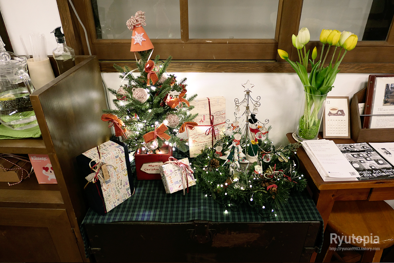 크리스마스 전이라 카페 입구에 작게 산타장식이 설치되어 있는게 은근히 귀엽네요.