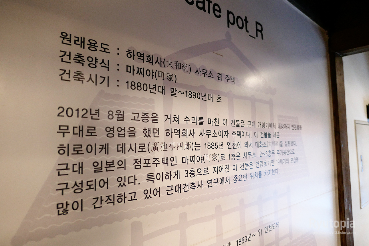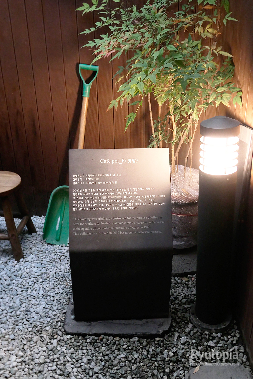 지은 지 약 130여 년으로 추정되는 (구)하역회사 사무소로 사용되던 가옥을 카페로 개조한 거라 근대문화유산으로도 지정.