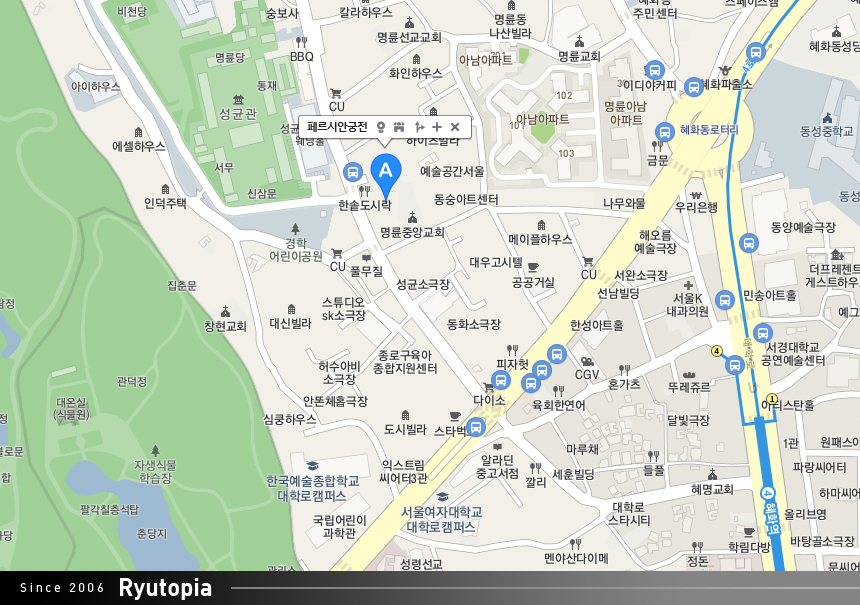 ※ 페르시안 궁전 찾아가는 길 : 지하철 4호선 혜화역 4번출구 하차, 성균관대학교 정문 맞은편 위치