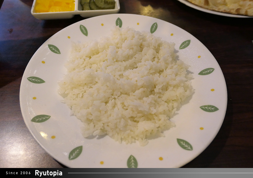 쌀밥은 넓은 접시에 평평하게 펴 담은 상태로 제공, 동남아 쌀이 아닌 우리가 먹는 평범한 쌀밥입니다.