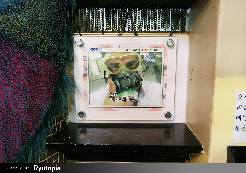 지난 방문때 보지 못한건데, 엄청 매운 카레를 조리할 때 쓰는 방독면 마스크와 고글(...) 이라고...