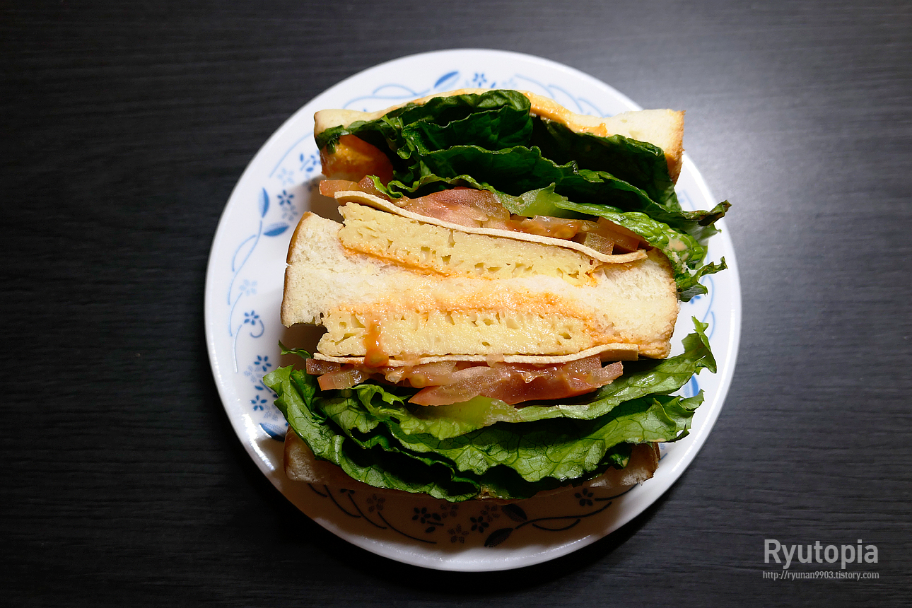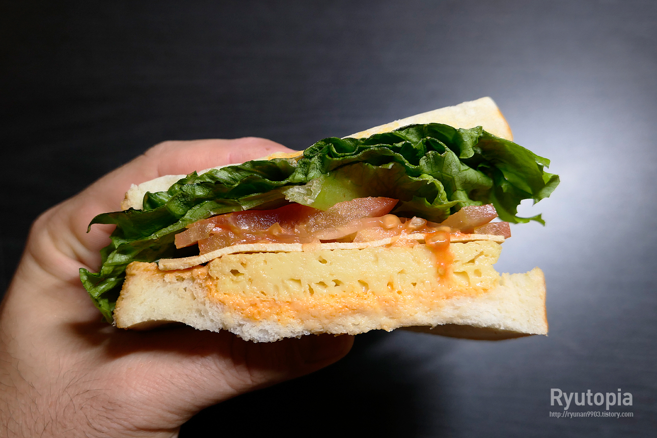 오로지 식물성 재료로만 만든 샌드위치라는 것이 특징이에요. 오믈렛이 들어있긴 한데 식물성 대체 오믈렛을 썼다는군요.