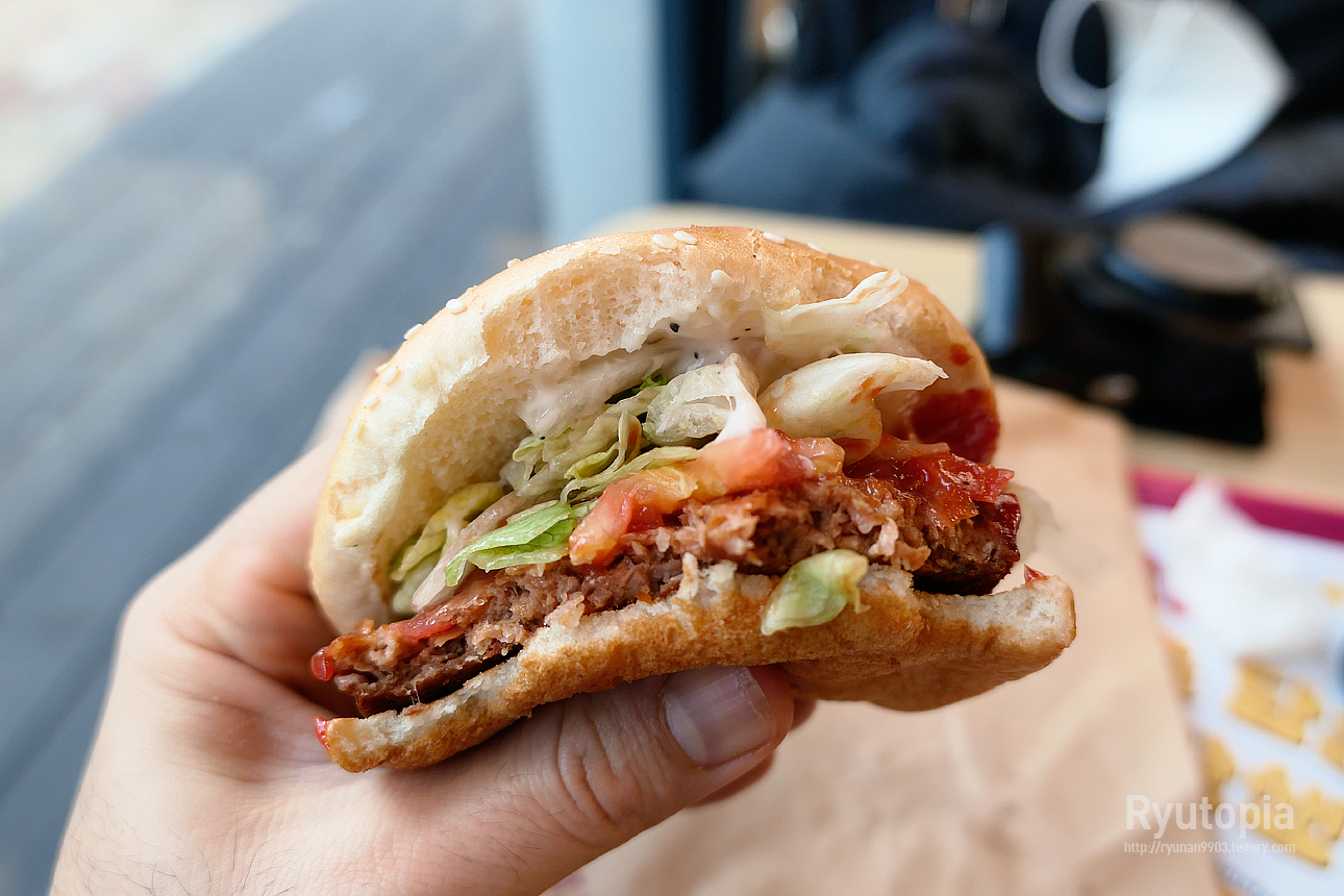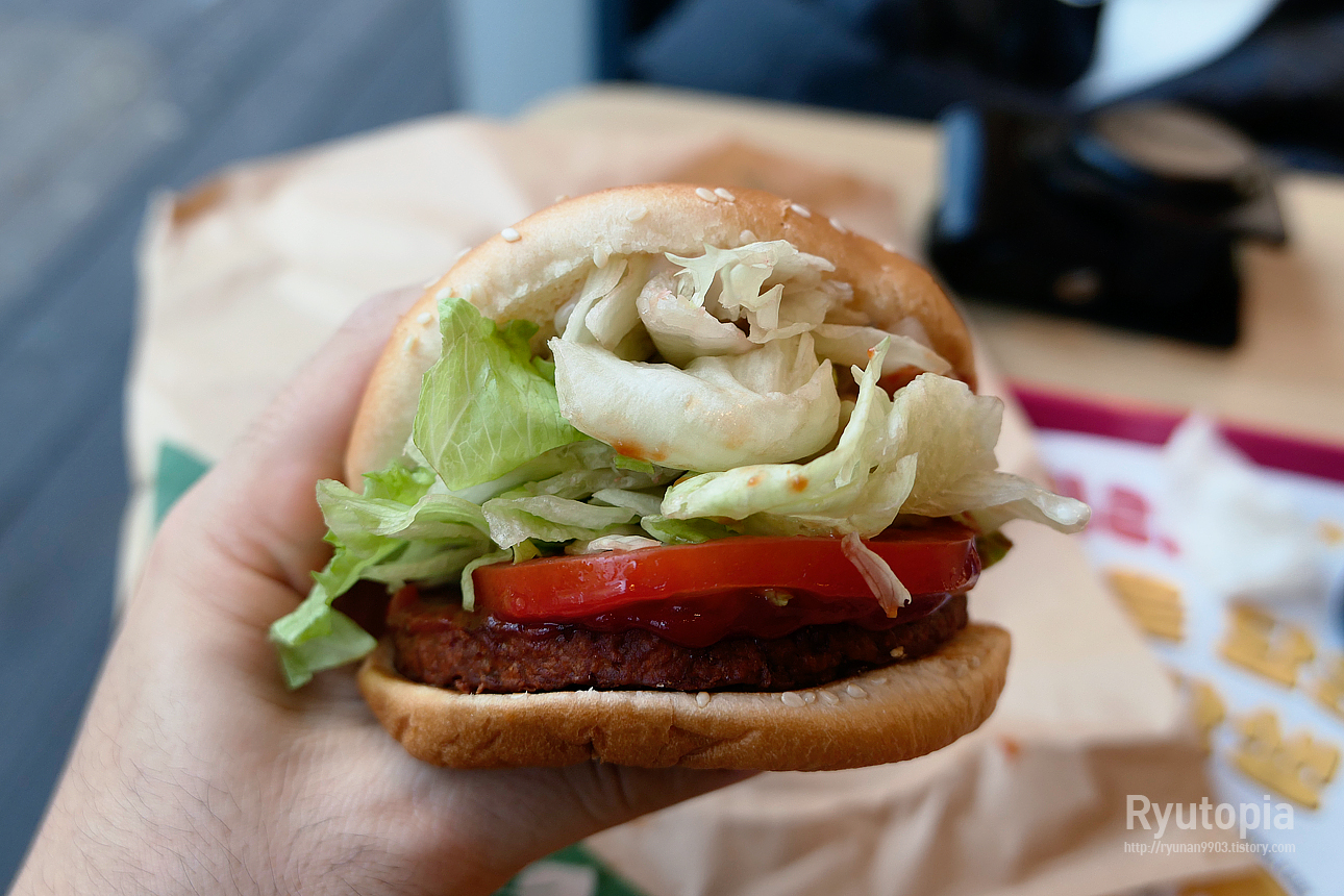 전혀 아니었고 식물성 패티가 가진 한계가 명백하다는 걸 느꼈던 맛이었는데, 이번엔 그 때에 비해 꽤 개선이 많이 된 듯
