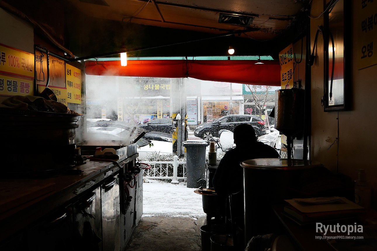 지금 이 글을 쓰는 순간의 엄청난 한파는 아니지만 이 날도 눈이 많이 내리고 있어 실내가 좀 추웠는데