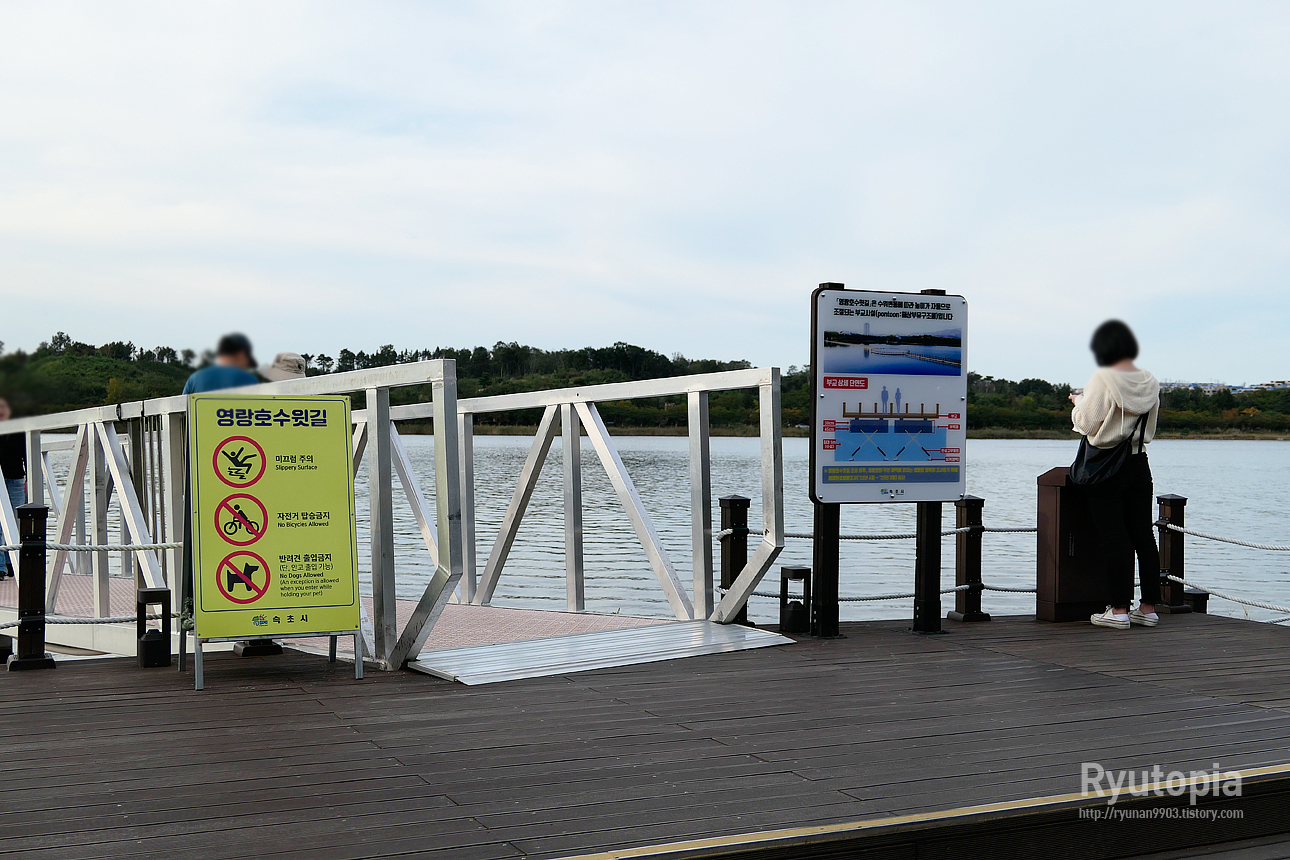 지난 번에 왔을 땐 보지 못했던 것인데 그 사이 새롭게 설치된 것 같습니다. 인도교 이름은 '영랑호수윗길' 이라고 하네요.