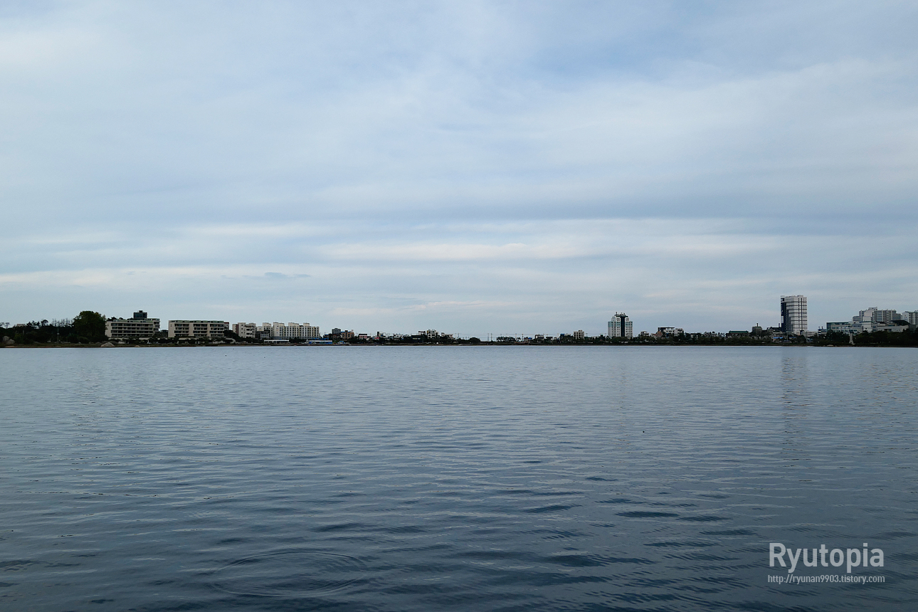 호수길을 걸으면서 바라볼 땐 여기가 그렇게 큰 호수인가? 라는 의문이 들곤 했었는데 한가운데서 보니 느낌이 다르네요.