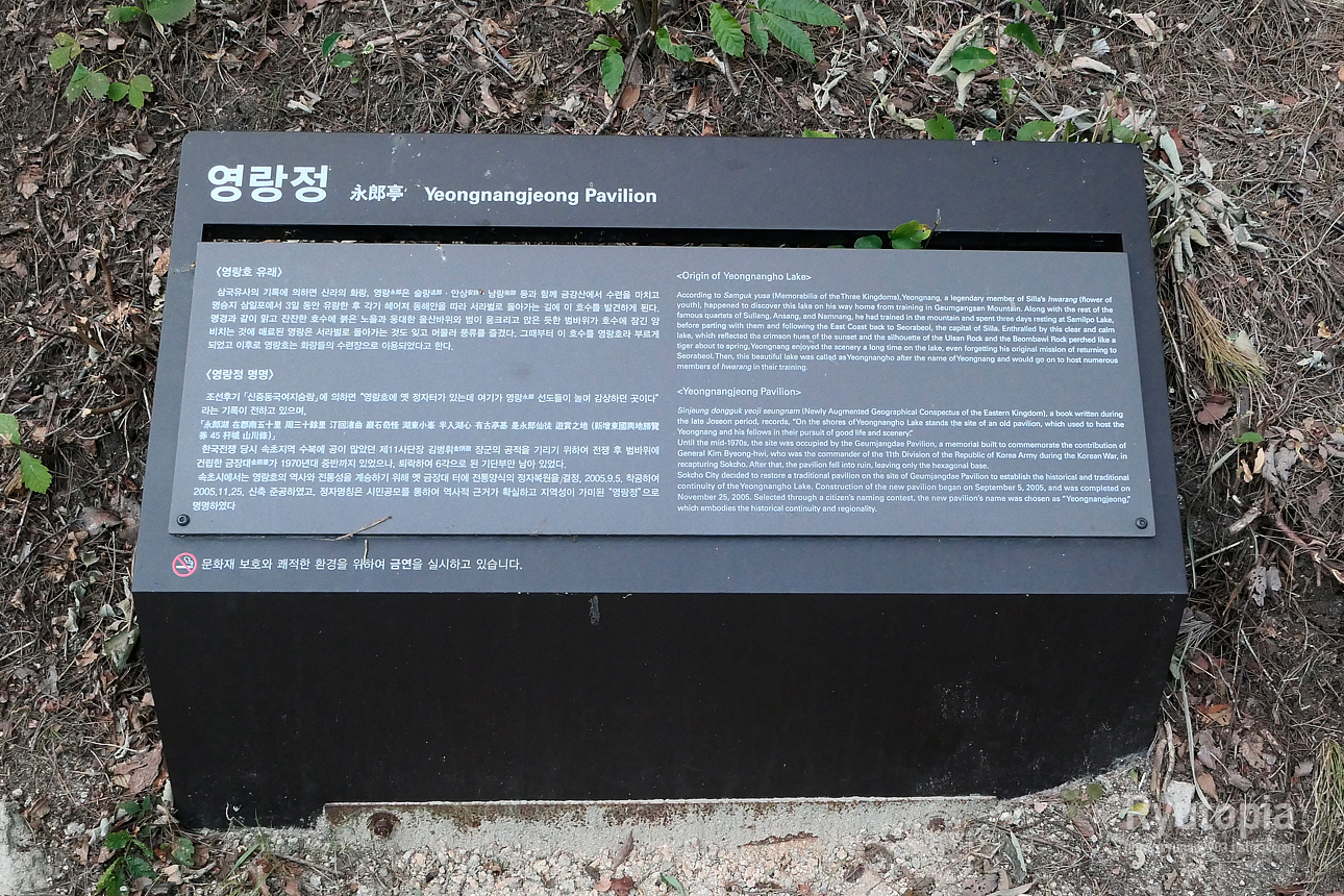 영랑호의 역사와 전통성을 계승하기 위해 지난 2005년에 준공하여 '영랑정' 이란 이름을 붙여 이어져오고 있다고 하네요.